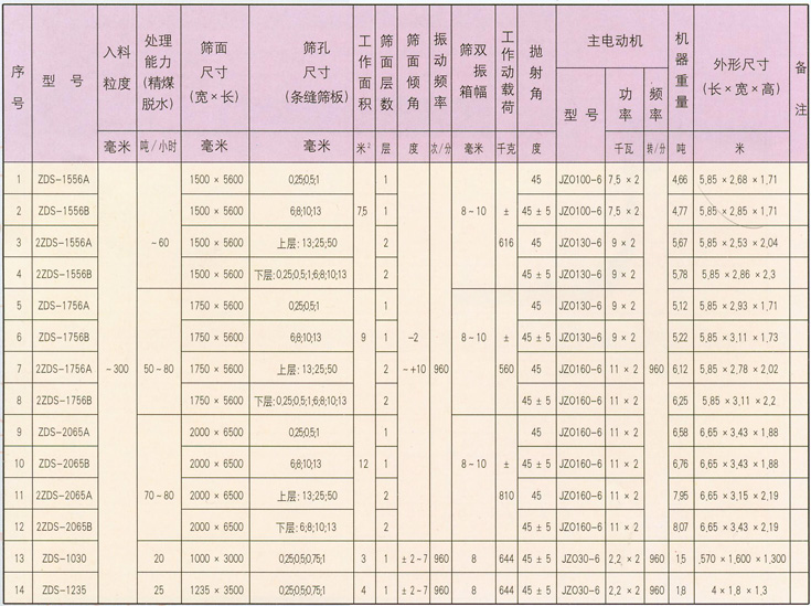 用于中細(xì)粒煤的脫水、脫介,也可用于中細(xì)粒煤的干式,濕式分級(jí)脫泥。也可用于堆比重<l.3的其它物料的脫水、脫泥和分級(jí)。